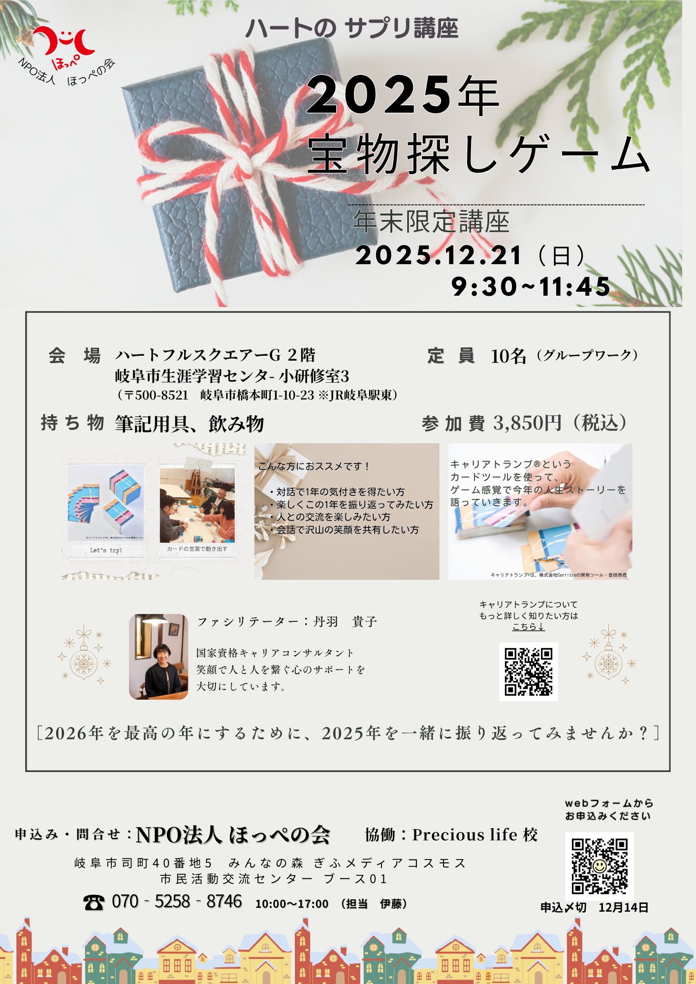 ※ハートのサプリ講座は個人ワーク・オンライン受講も受け付けます。