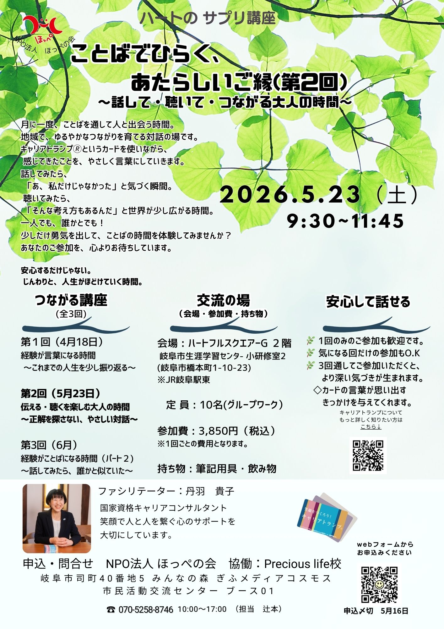 ※ハートのサプリ講座は個人ワーク・オンライン受講も受け付けます。